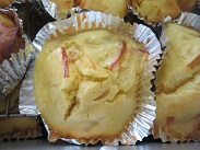 きょうのパンケーキには、いちょう切りのりんごが入っています。