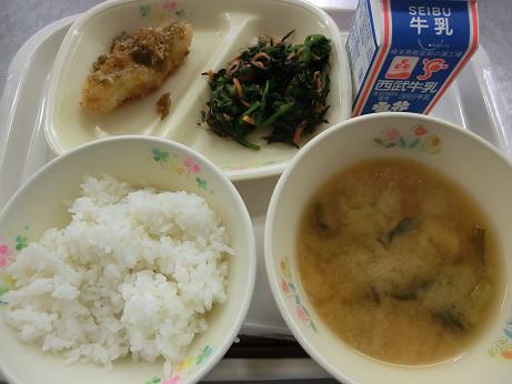 きょうは、 ごはん・牛乳・白身魚の南蛮漬け・味噌汁・ ほうれん草サラダでした。 ほうれん草は、緑黄色野菜でビタミンC・カロテンが豊富 です。これからの寒い時期は、カゼの予防に有効な栄養素 をたくさん含んでいて、やわらかく甘みもあります。 |