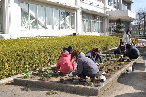 3月4日(土)PTA環境対策委員会の皆さんによる花いっぱい運動が行われ、正門付近や花壇などがきれいになりました。ありがとうございました。