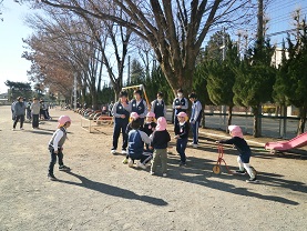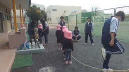 12月1日に3年1組、12月15日に3年2組が、常盤幼稚園に行き、保育実習を行いました。実習は、グループごとに遊びを考えて、幼稚園児とふれあいの楽しさや喜びを感じられたと思います。