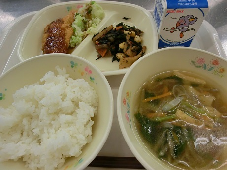 ごはん・牛乳・鮭チーズフライ・せんきゃべつ・