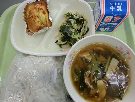 肉うどん・牛乳・カルシウムパンケーキ・和風サラダ