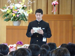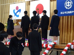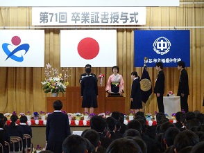 3月16日(金)幡羅中学校第71回卒業証書授与式が厳粛な中行われました。教育は感動であるという校長式辞にもあったように、教育の集大成としてのこの卒業式は大変感動の多いものでした。保護者もおよそ250名が来校し、本校生徒の卒業を皆で祝しました。卒業生の前途に幸多かれと祈ります。がんばれ幡羅中卒業生!