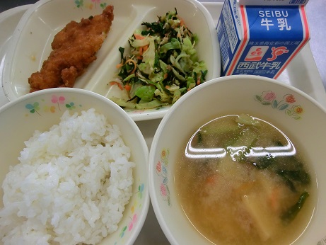 きょうは、 カツ丼・牛乳・みそ汁・磯の香あえでした。 3年生のみなさんは、受験が目前にせまっています。 給食室から「カツ丼」でエールを送りたいと思います。 がんばってください!! |