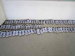 揃えられた上履き(1年生) 話を聞く姿勢も立派な1年生 2年生は真剣に耳を傾けています