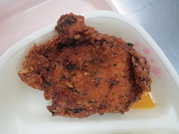衣に ひじきの入った チキンカツで、貧血予防も兼ねてます。
