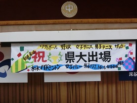 学校総合体育大会県大会の壮行会が12日(水)に行われ、過去最多となる14の部等が、全校生徒から激励を受けました。新人戦後、打倒幡羅に燃える市内各校の成長もあり、苦戦が予想されましたが、本校の各部は最後まであきらめず、粘り強く戦い、見事県大会出場切符を手にしました。改めておめでとうございます。また、応援してくださった保護者、地域の皆様に厚く御礼申しあげます。なお、真の勝負はこれからであります。県大会で少しでも上位進出できますよう、引き続き熱いご声援をお願いいたします。We are ONE HATARA!