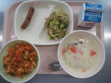 洋風炊き込みご飯です。給食風にアレンジしてあります。
