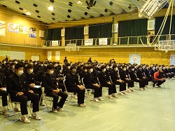 3年生は、後輩たちに向け、幡羅中の伝統を受け継ぎ、さらによい学校を目指すように