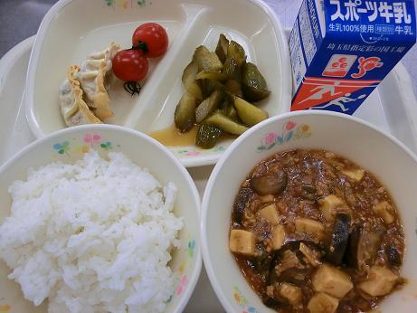 ごはん・牛乳・マーボーナス豆腐・焼餃子・中華