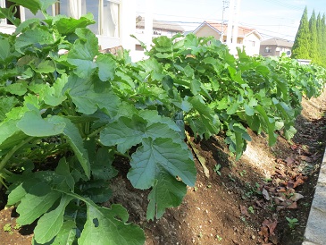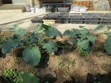 技術室前の幡羅農園には秋から冬の野菜が育っています