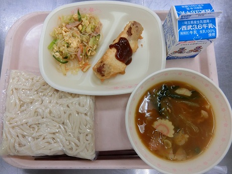 カレーうどん・アメリカンドッグ・中華サラダ・牛乳