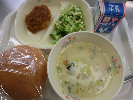 クリームスープにはさつまいもが入っていました。学校で