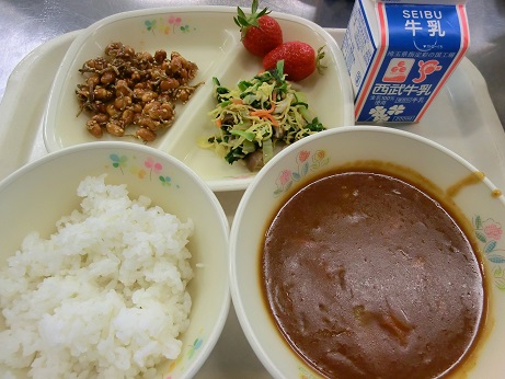 ハヤシライス・牛乳・大豆とじゃこの甘辛揚げ・
