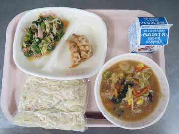 ごまみそラーメン・揚げ餃子・深谷ねぎのナムル・牛乳