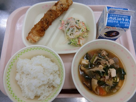 初日は『お富ちゃん給食』深谷市と友好都市である群馬県富岡市に因んだ献立です