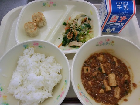 きょうは、 ごはん・牛乳・四川風マーボー豆腐・えびしゅうまい 深谷ねぎのナムルでした。 今週は、給食週間です。昔の給食や姉妹都市の献立 深谷市の郷土料理を紹介します。 また、生産者をはじめ多くの方々や食べ物の恵みに感謝して 給食を味わう機会になってほしいと思っています。 |