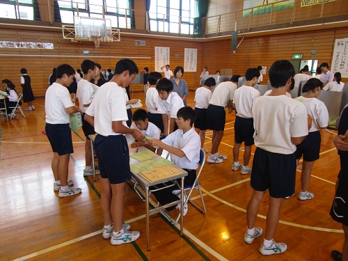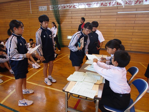 立会演説会に先立って、駅伝と県大会に出場する陸上部の壮行会が行われました。