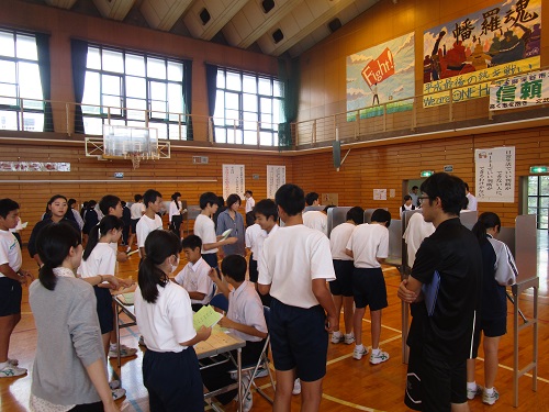 立会演説会後、選挙管理委員の丁寧な対応の下、投票が行われました。