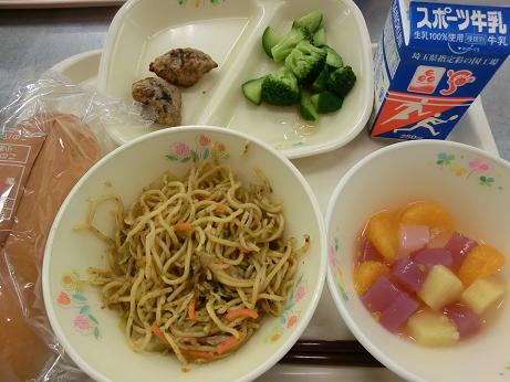 コッペパン・牛乳・キムチ入り焼きそば・ひじき入り