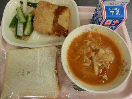 ハムカツサンド・牛乳・ミネストローネ・スティック