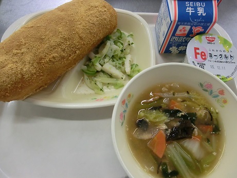 きなこ揚げパン・牛乳・白菜と肉団子のスープ