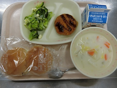 メンチカツサンド・クラムチャウダー・グリーンサラダ・牛乳