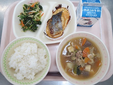 ごはん・さわらのみそマヨ焼き・ごまあえ・豚汁・牛乳