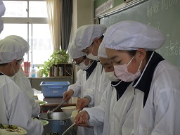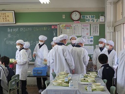 1年生、全クラス しっかりと身支度ができ手早く配膳ができます。