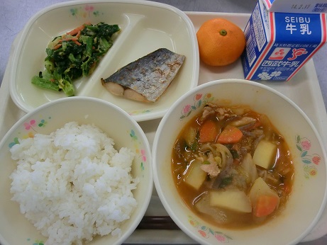 ごはん・牛乳・じゃが豚キムチ・さわらの西京焼き