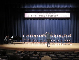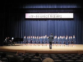 11月27日(日)午後2時から、花園文化会館アドニスで、音楽部がオープニングセレモニーとして合唱「ふるさとの四季」を披露しました。各学校のPTAの方々から多くの拍手をいただきました。素晴らしい演奏をありがとうございました。