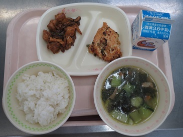 ごはん・韓国風とり肉の照り焼き・家常豆腐・中華スープ・牛乳