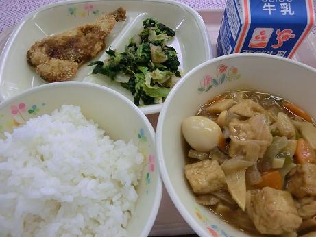 ごはん・牛乳・生揚げの中華煮・イワシフライ