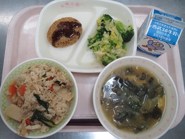 中華風炊き込みごはん・卯の花コロッケ・温野菜・
