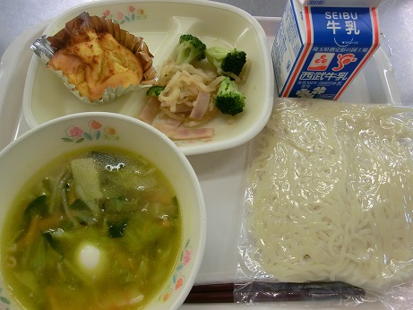 タンメン・牛乳・オレンジパンケーキ・大根サラダ