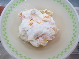 フルーツクリームに大喜びの生徒 久しぶりでおいしかったですね  |