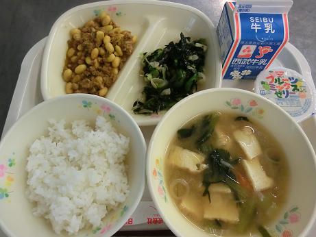 ソイ丼・牛乳・味噌汁・海そうサラダ・フルーツ