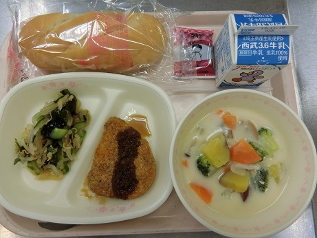 大根とじゃこのサラダ・秋の味覚シチュー・牛乳