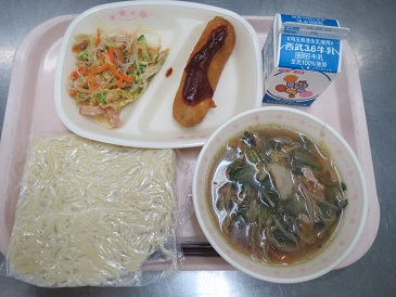 しょうゆラーメン・アメリカンドッグ・春雨サラダ・牛乳