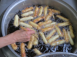 油で揚げます。