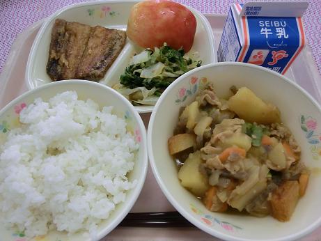 ごはん・牛乳・さんまのかば焼き・肉じゃが・おひたし