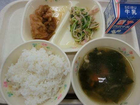 ごはん・牛乳・鶏肉の中国風南蛮漬け・もやしの