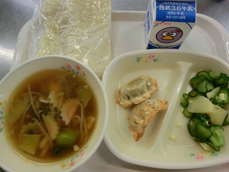醤油ラーメン・牛乳・ぎょうざ・ポテトのさっぱりサラダ