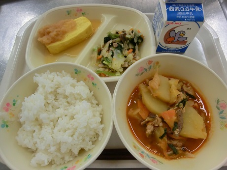 ごはん・じゃが豚キムチ・厚焼き玉子・大根おろし