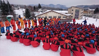 ゲレンデにて開校式が行われました これからスキー実習のスタートです |