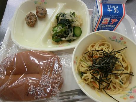 黒パン・牛乳・和風スパゲッティ・ひじき入りつくね