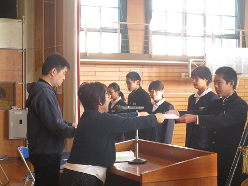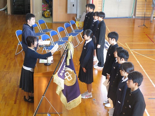 学級委員任命式・生徒会本部役員引き継ぎ式