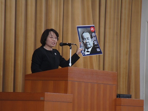 また、深谷市出身の渋沢栄一翁が新しい1万円札の肖像画に採用されたことを受けて校長から、栄一翁の唱えていた「立志(夢や希望をもつこと)と忠恕(まごころと思いやり)」の大切さが改めて話されました。