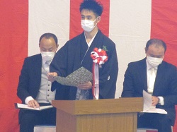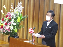 深谷市教育委員会からの告示、市長祝辞はビデオメッセージとなりました。