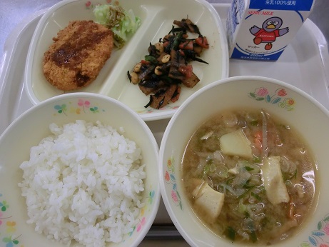 ごはん・牛乳・コロッケ・せんきゃべつ・大豆の磯煮